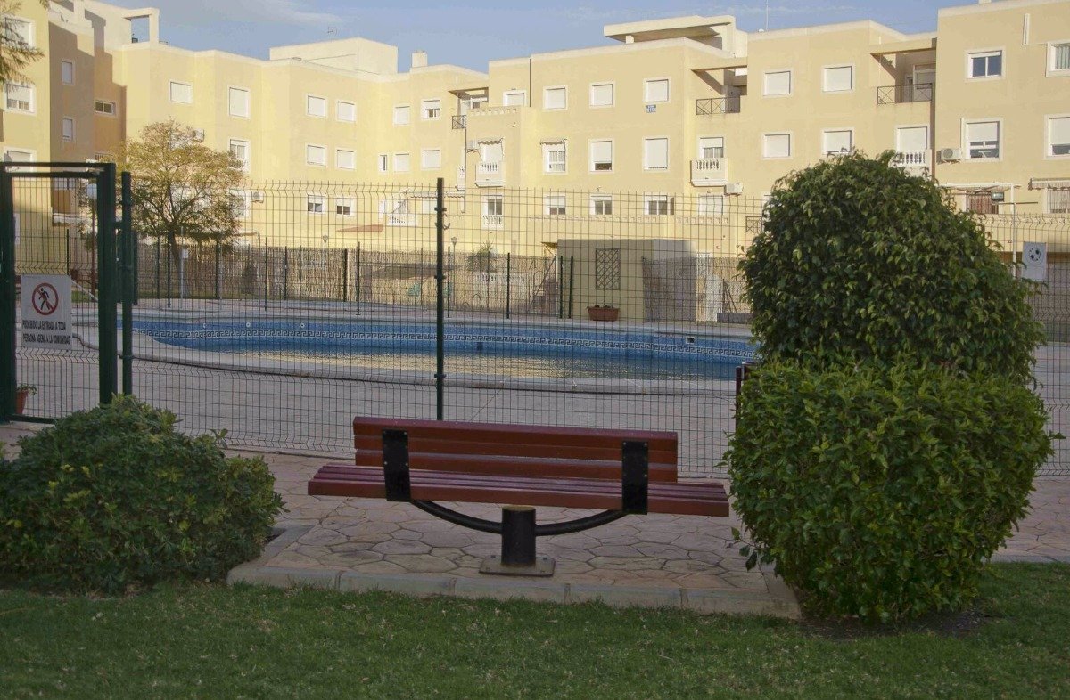 os presento esta vivienda con encanto. Consta de cocina americana, amplio y luminoso salón, dos dormitorios grandes con vestidor, mucha claridad, baño completo, amueblado minimalista dando un toque distinto a la vivienda, tarima flotante en un dormitorio y muy bien cuidado. Sin lugar a duda uno de los puntos fuertes de esta vivienda es su comunidad con dos piscinas, amplias zonas verdes y~ en una de las mejores zonas de Roquetas de Mar, Las Salinas.~~Y Plaza de garaje doble con trastero!!!~